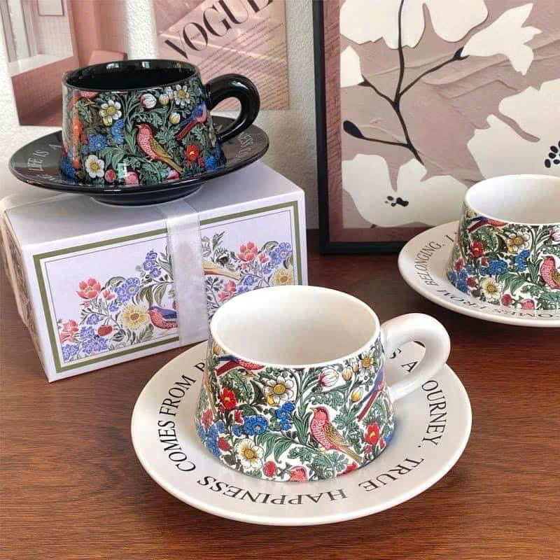 Bộ tách trà cafe họa tiết hoa lá chim