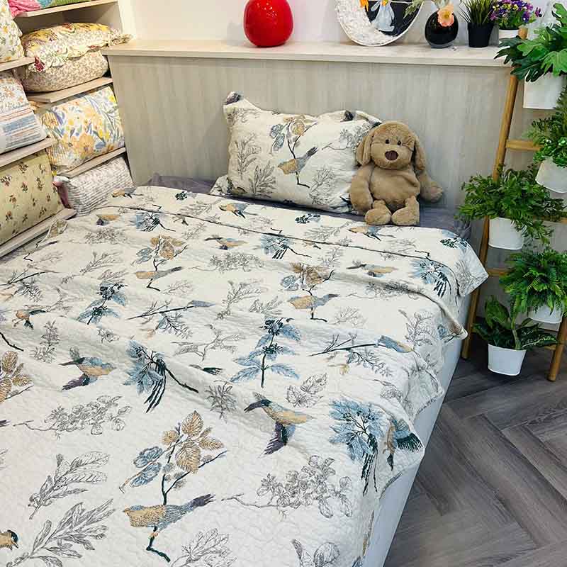 Bedding set phối hoạ tiết nhẹ nhàng làm điểm nhấn cho căn phòng,gần gũi với thiên nhiên, gây sức hút ngay từ cái nhìn đầu tiên. Còn gì hơn nếu được sở hữu bộ drap này trong căn phòng ngủ của bạn.