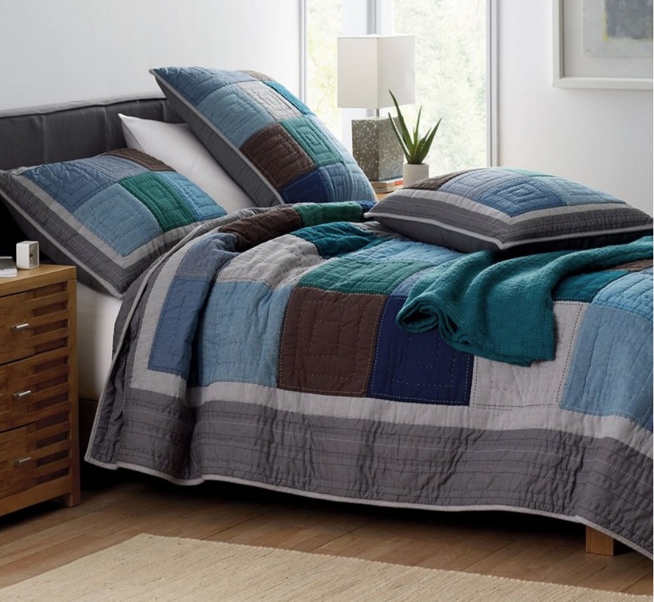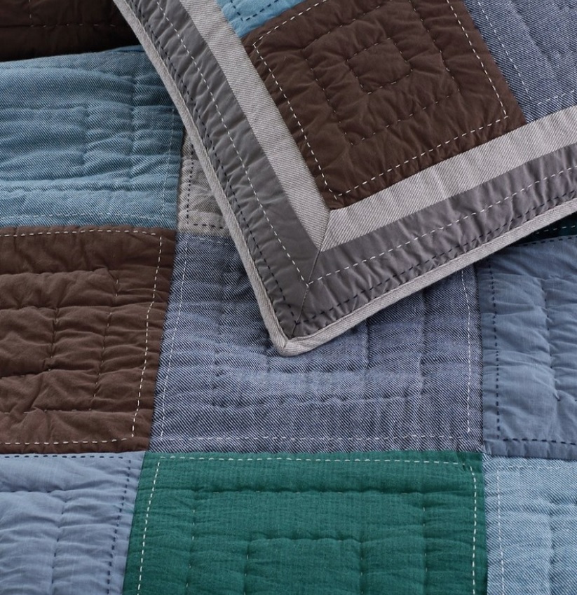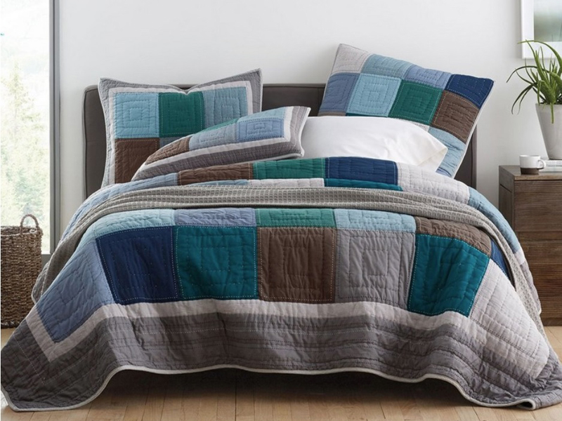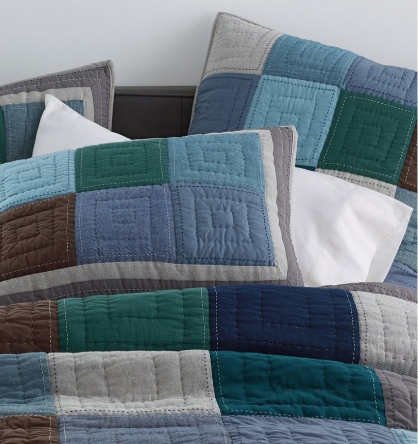 Hàng xuất Mỹ hãng The Company Store, 100% cotton, được chần bông thủ công. Chăn được ghép vải nghệ thuật, băng các mảnh vải có màu sắc và kích thước khác nhau rồi ráp lại để tạo nên một tổng thể hài hoà về màu sắc và bố cục.
