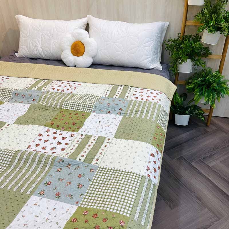 Chăn lẻ 100% cotton thoáng mát, ghép chần mềm mịn. Hàng xuất Hàn