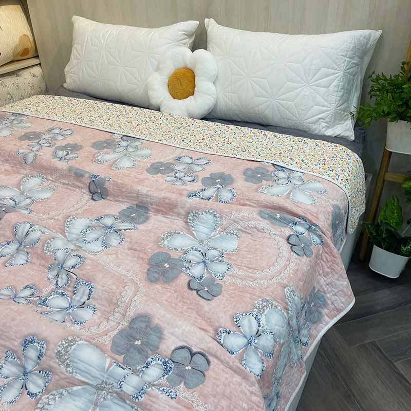 Chăn lẻ 100% cotton thoáng mát, ghép chần mềm mịn. Hàng xuất Hàn