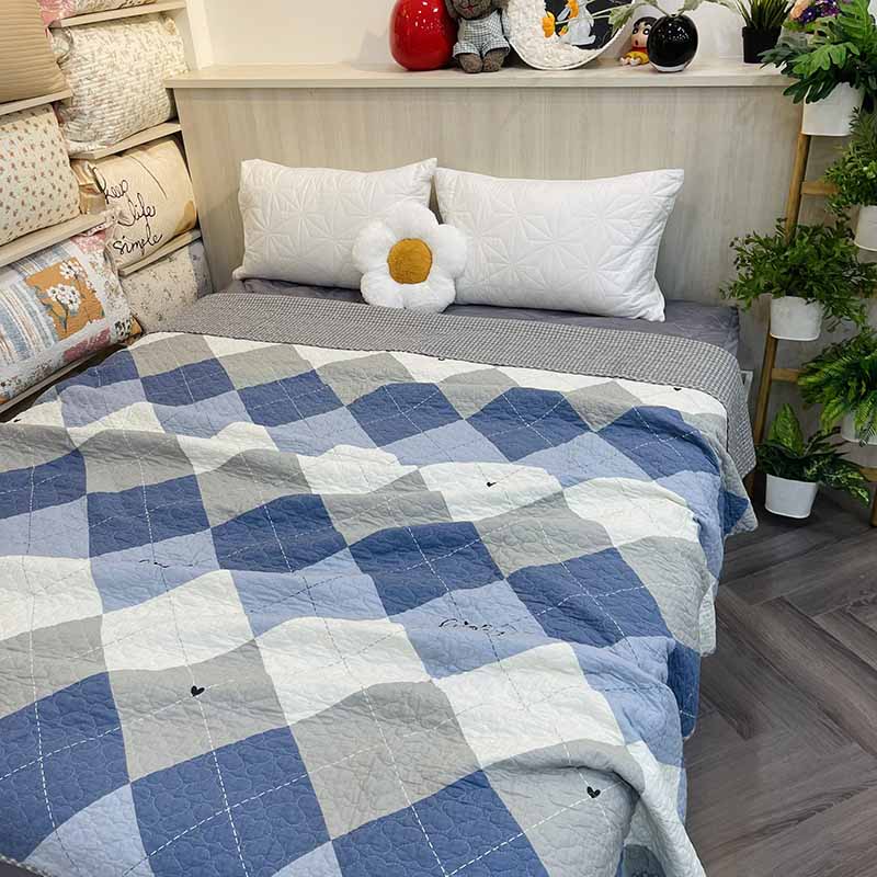 Chăn lẻ 100% cotton thoáng mát, ghép chần mềm mịn. Hàng xuất Hàn