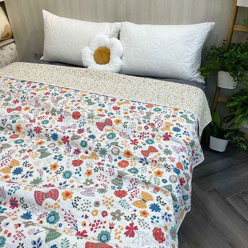 Chăn lẻ 100% cotton thoáng mát, ghép chần mềm mịn. Hàng xuất Hàn