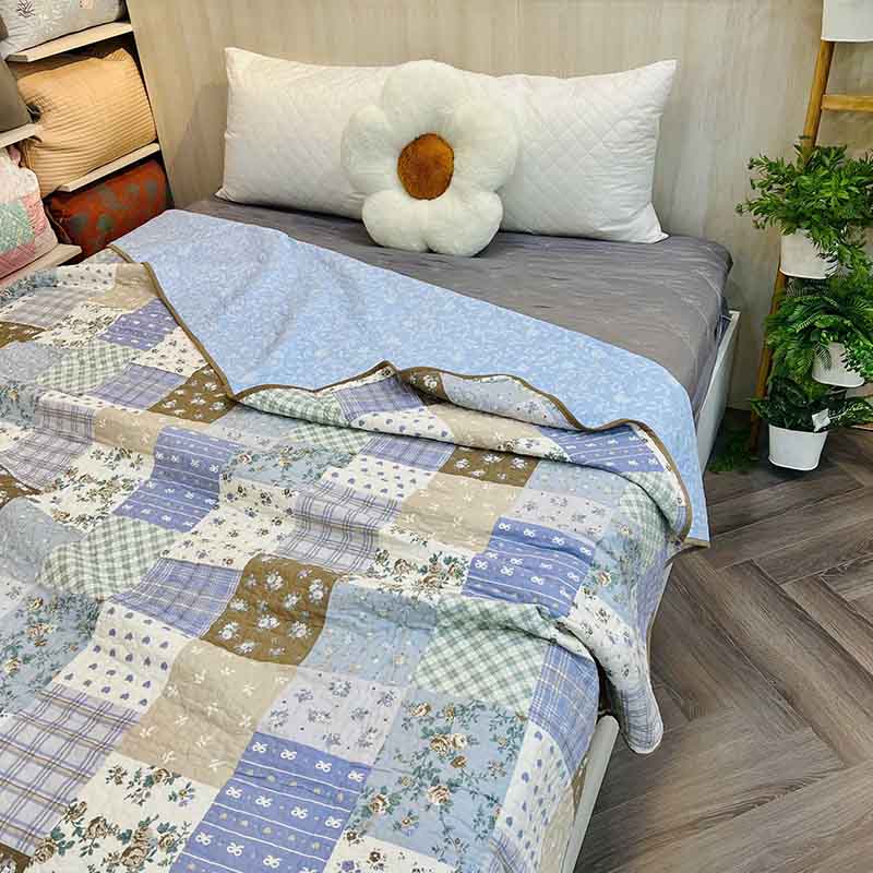 Chăn lẻ 100% cotton thoáng mát, ghép chần mềm mịn. Hàng xuất Hàn