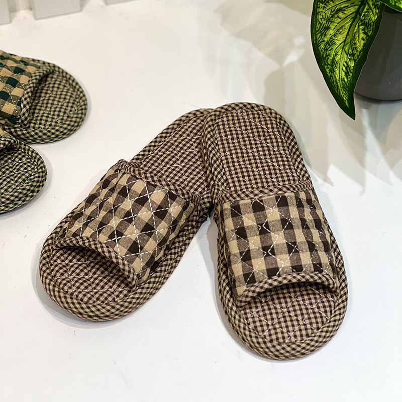 Dép vải trong nhà đế 2 lớp Freesize - Caro nâu - GDP11321