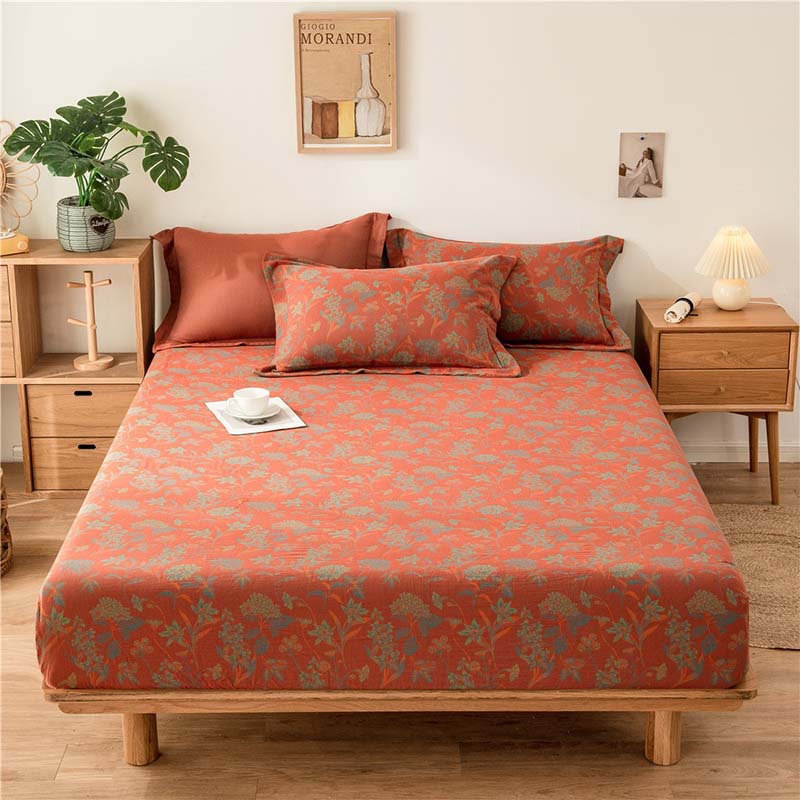 Drap bọc 150x200cm gồm 2 vỏ gối - Bông đỏ - DRP03065
