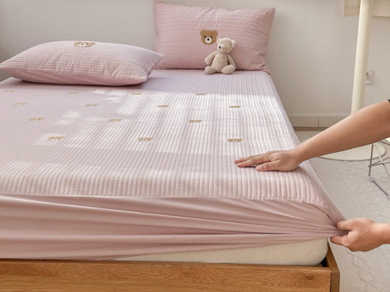Drap bọc 160x200cm gồm 2 vỏ gối - Gấu sọc hồng - DRP01616