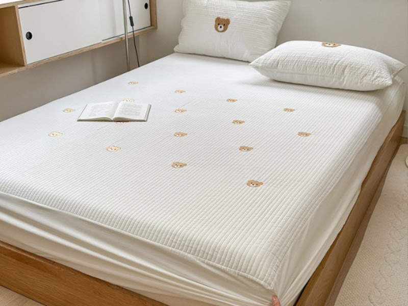 Drap bọc 180x200cm gồm 2 vỏ gối - Gấu sọc trắng - DRP01637