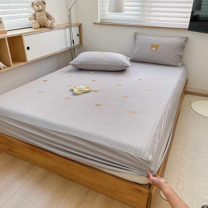 Drap bọc 200x220cm gồm 2 vỏ gối - Gấu sọc xám - DRP01648