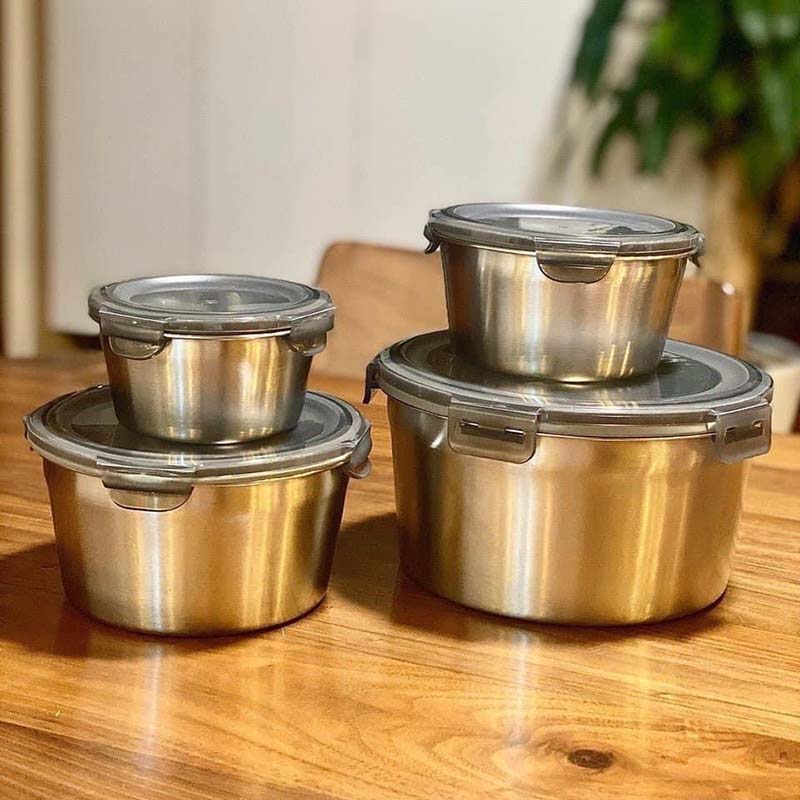 SET 4 HỘP ĐỰNG THỨC ĂN INOX 304 XUẤT ĐỨC CÓ NẮP ĐẬY