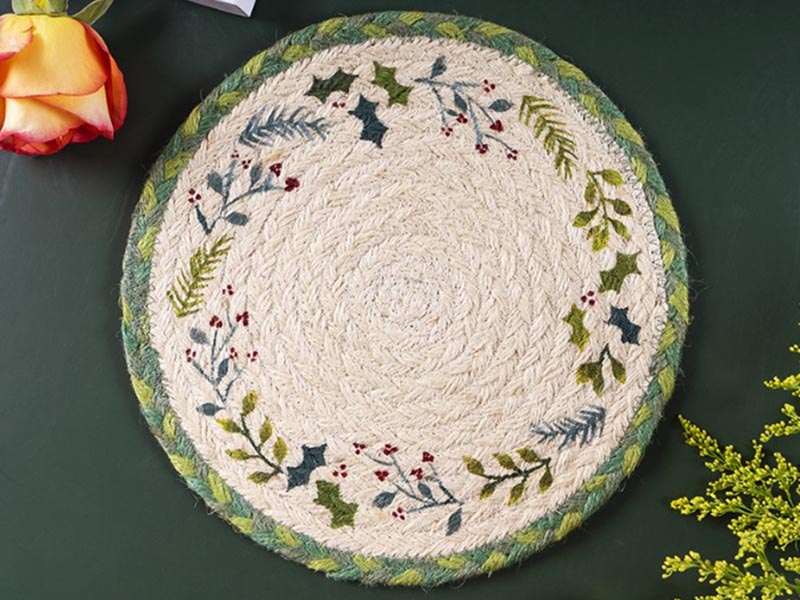 Tấm lót chén dĩa tròn Size 16cm - Vòng hoa xanh lá - LCD12016