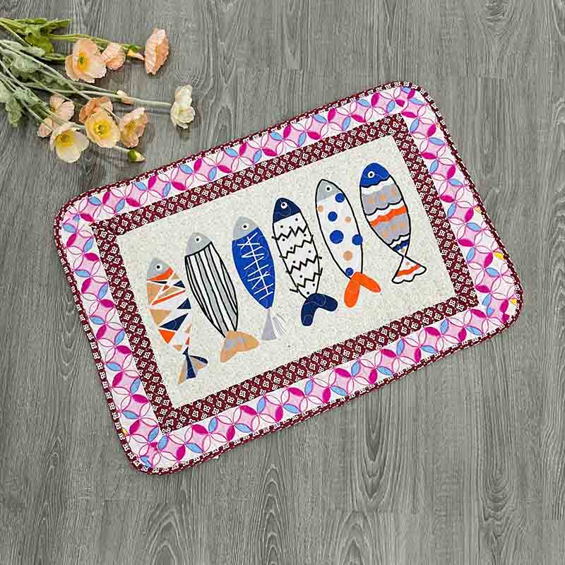 Thảm chùi chân - Cá 6 con viền hoa hồng - TCC11507