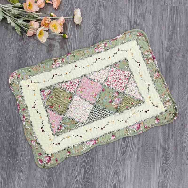 Thảm chùi chân - Ghép xéo viền trắng-xanh lá - TCC03501