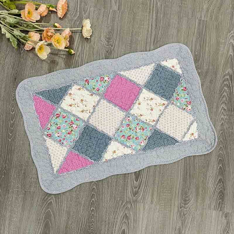 Thảm chùi chân - Ghép xéo viền xanh dương -TCC03701
