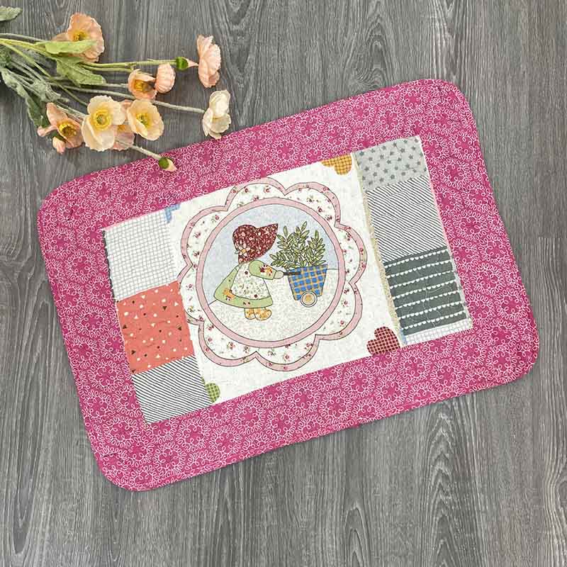 Thảm chùi chân - Cô bé và cún con - Hồng cánh sen - TCC12608