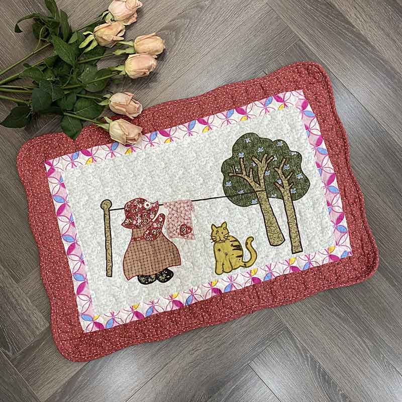 Thảm chùi chân - Cô gái và mèo vàng - viền hồng -TCC10205