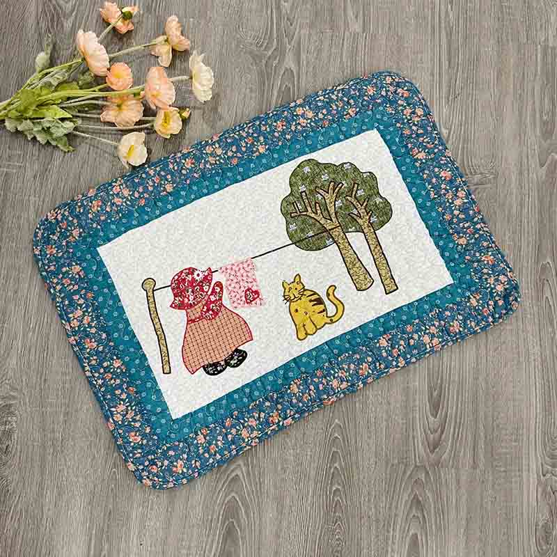 Thảm chùi chân - Cô gái và mèo vàng - xanh dương - TCC10208