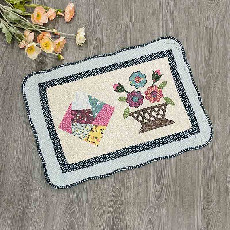 Thảm chùi chân - giỏ hoa & ô vuông sắc màu - xanh dương - TCC54508