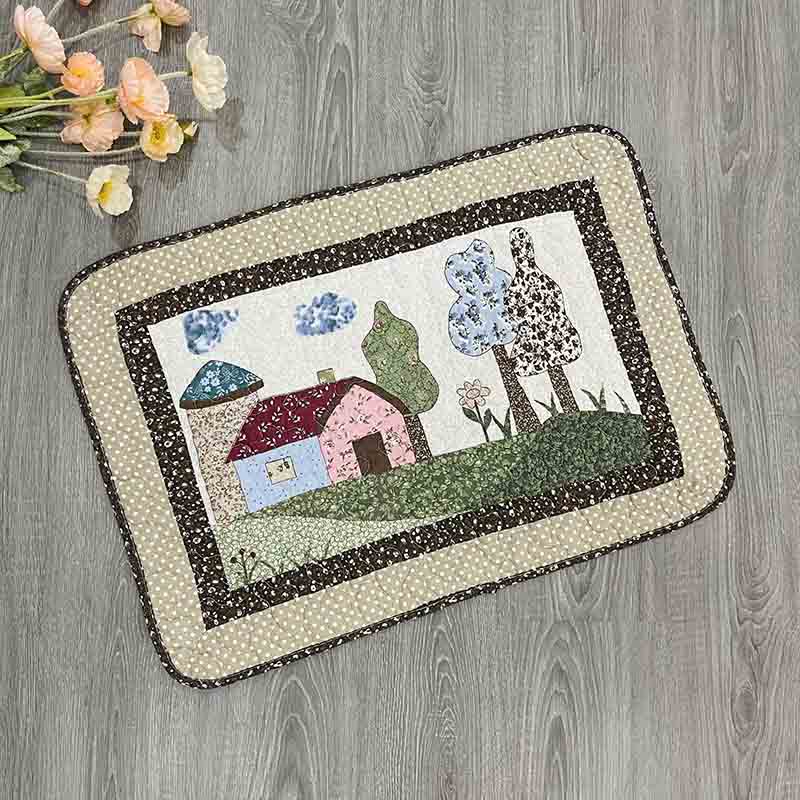 Thảm chùi chân- Ngôi nhà hồng - Viền nâu hoa trắng -TCC04504