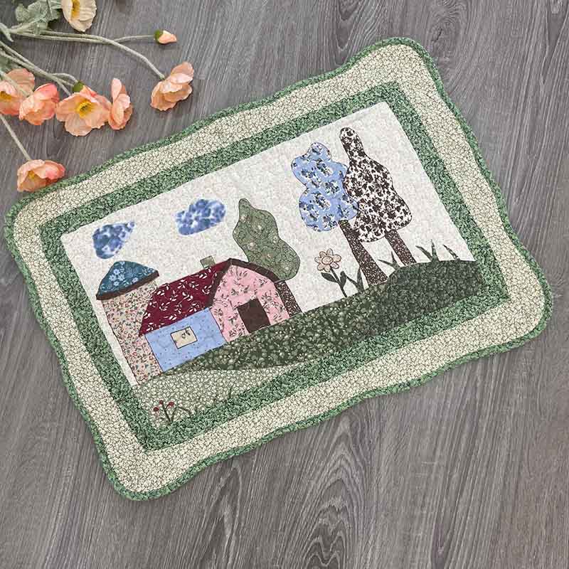 Thảm chùi chân - Ngôi nhà hồng-Viền xanh lá - TCC04502
