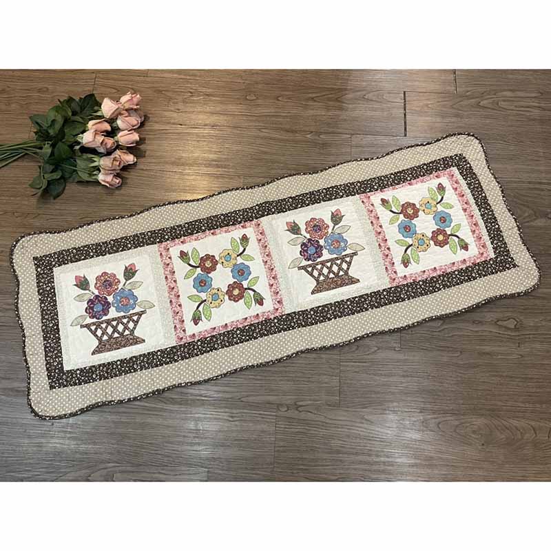 Thảm dài - Giỏ hoa - viền hoa nâu - TDA08805