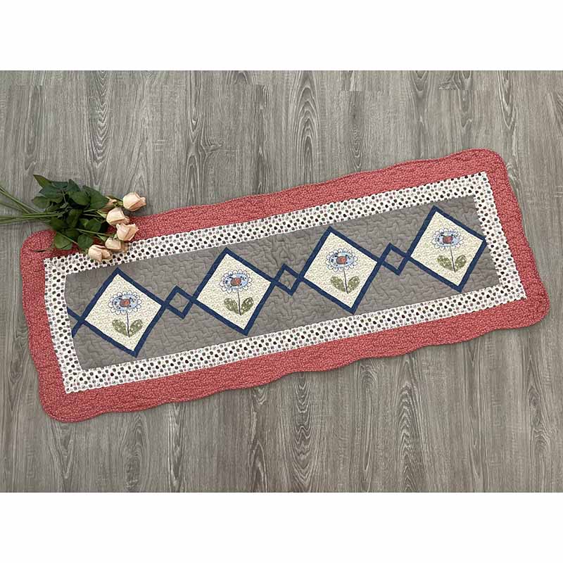 Thảm dài - Hoa mặt trời hình vuông xanh - Viền đỏ - TDA50204