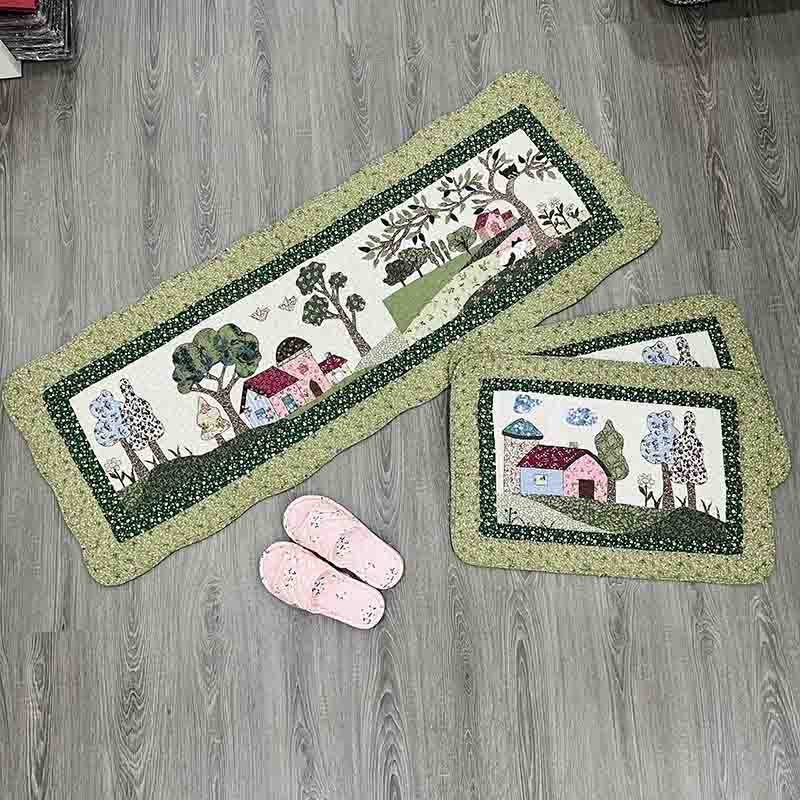 Thảm set 3 - Ngôi nhà hồng viền hoa xanh lá TDA04725 & TCC04525 - T3N04725