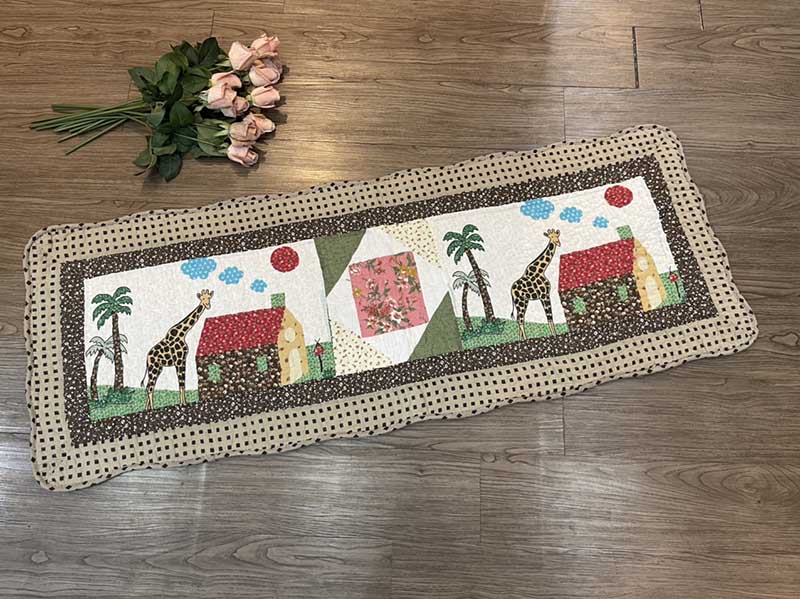 Thảm dài - nhà đỏ và hưu cao cổ viền caro nâu - TDA34502