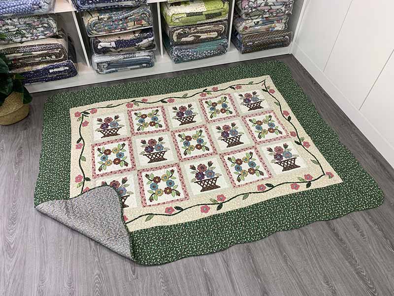 Thảm lót sàn 200x230 - giỏ hoa - viền xanh lá - TLS28522