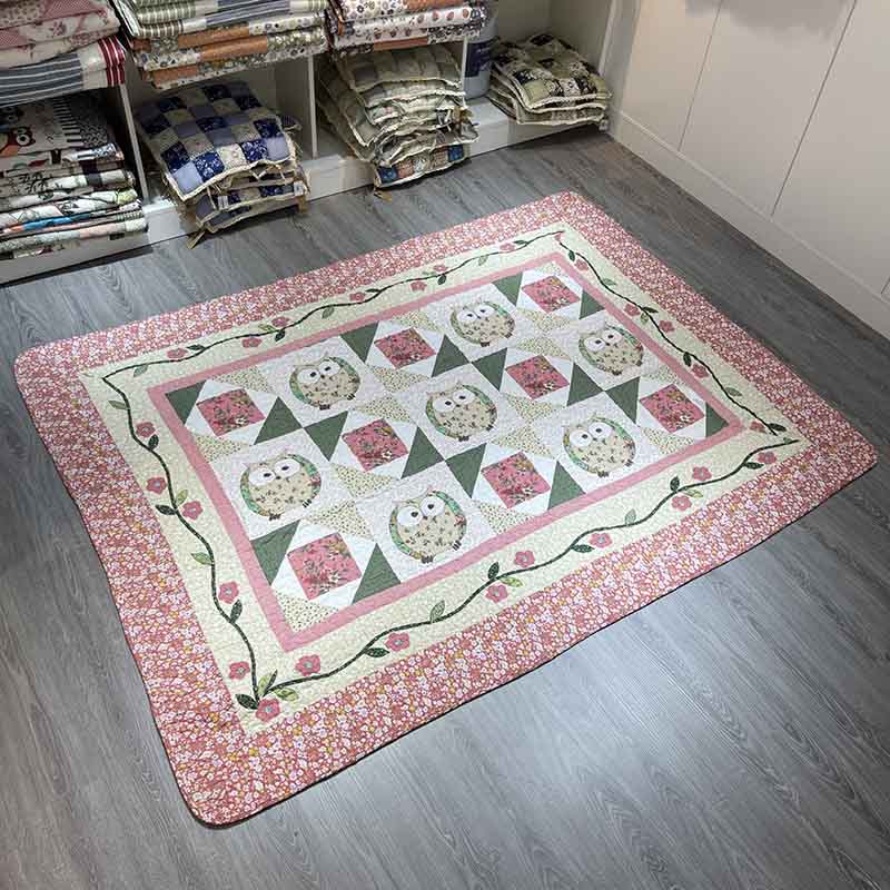 Thảm lót sàn - Cú 1 con viền hồng 200x230cm - cú hồng - TLS16420