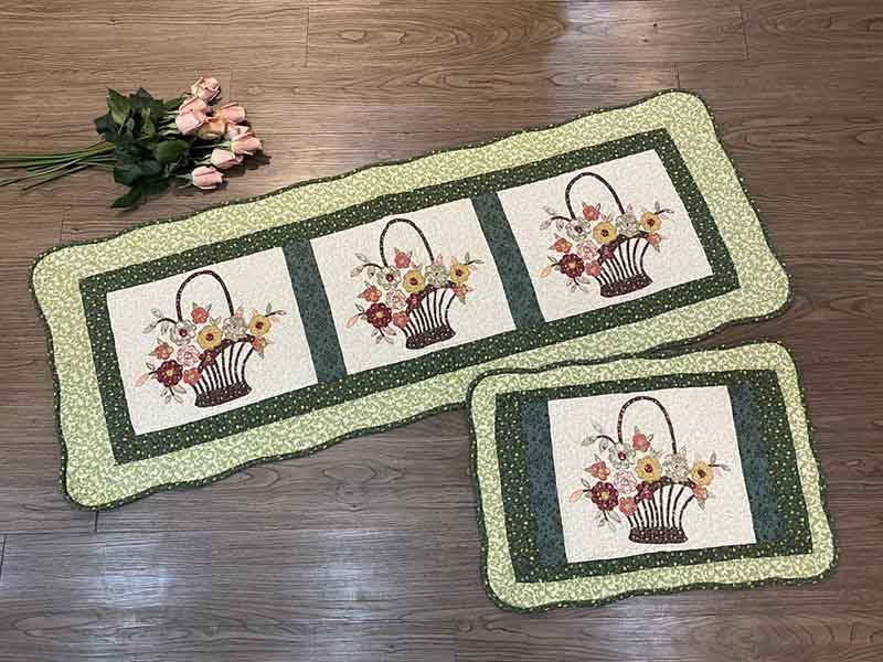 Thảm set 2 - giỏ hoa viền xanh lá - T2N45902