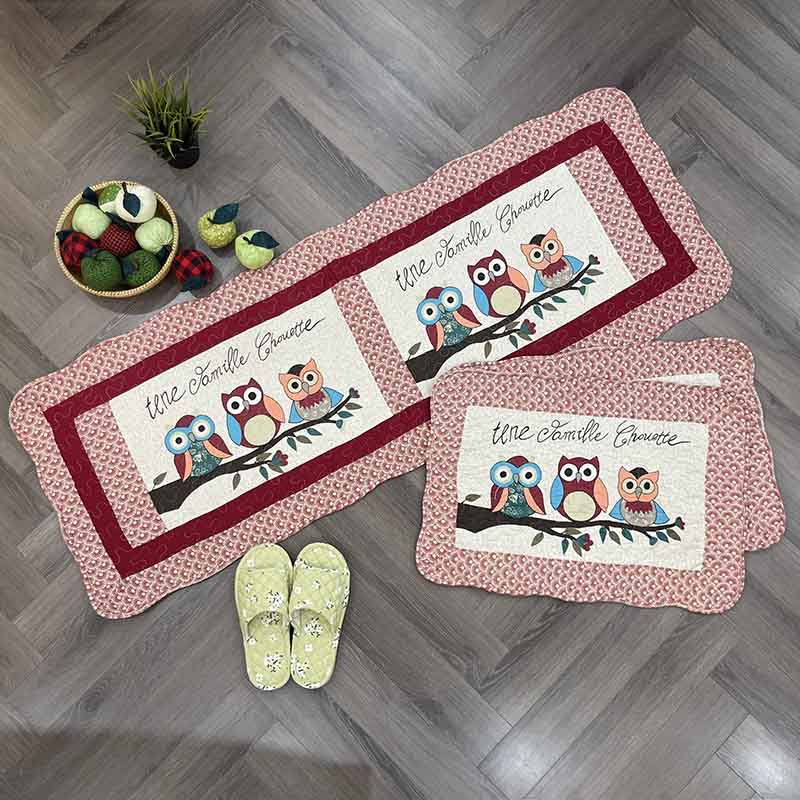 Thảm set 3 - 3 con cú - đỏ hồng TDA15005 vs TCC15002 - T3N15005