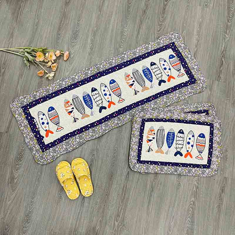 Thảm set 3 - Cá 6 con viền hoa tím - T3N11517