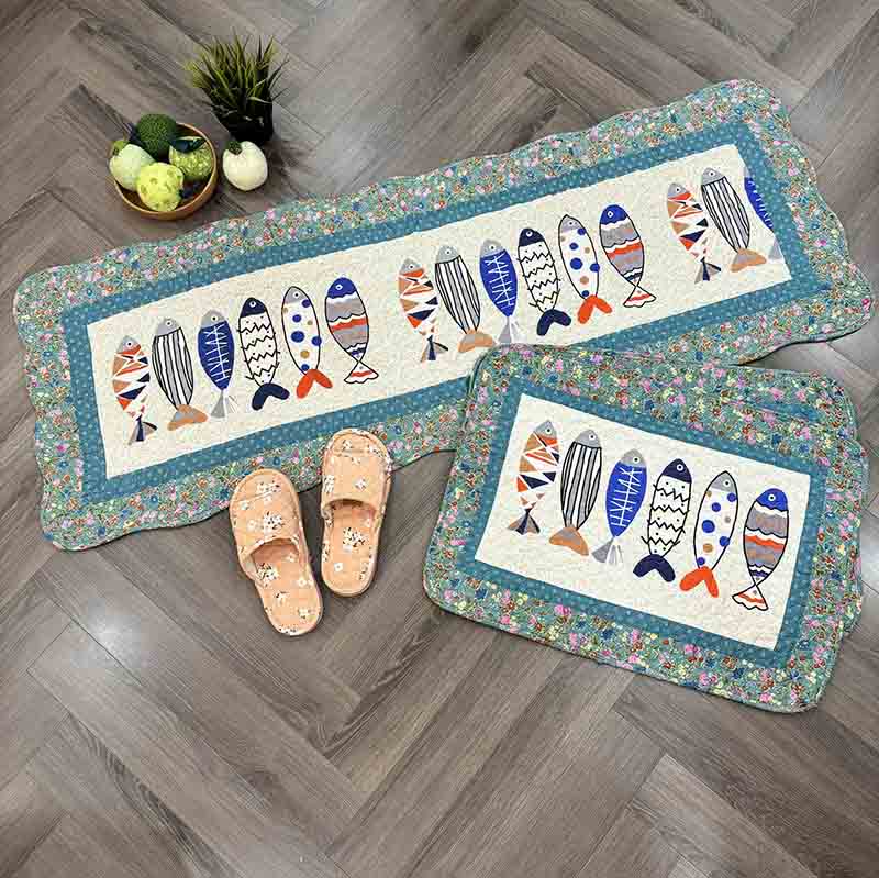 Thảm set 3 - Cá 6 con viền hoa tím xanh - T3N11511