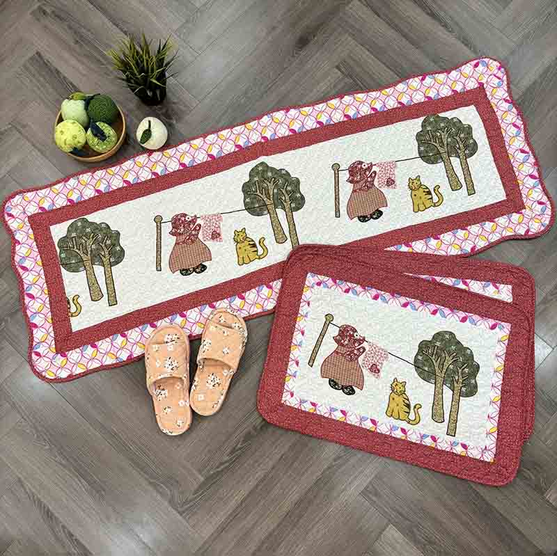 Thảm set 3 - cô gái và mèo vàng - hồng - T3N10205