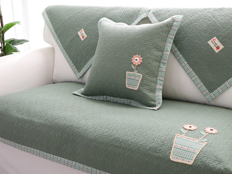 Thảm sofa 90x90cm - Giỏ hoa 2 bông - Xanh lá - TSF11390
