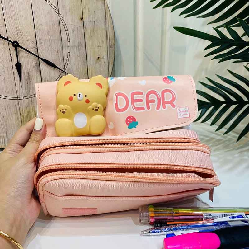 Túi đựng bút Kute có quai xách 20.5x10.5x5.5cm Gấu hồng Dear - BLT08111