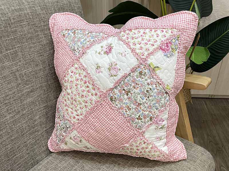 Vỏ gối tựa trang trí, chất liệu 100% cotton ghép chần